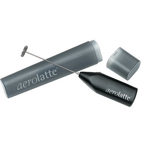 The original steam free milk frother from Aerolatte is now available in a convenient travel case. No longer do you have to leave your Aerolatte at home ¿ bring it on holiday this year. This special carry case is perfect for your boat, RV, camping trip or just take it to the convenience store for a quick fix on the way to work. Working directly in the mug or glass, the stylish aerolatte milk frother takes just 20 seconds to turn a small amount of hot or cold milk into the perfect froth for cappuccinos, caffe lattes, mochas and specialty coffees as well as hot chocolates, malts and milk shakes. Two AA batteries. Experience Aerolatte!
