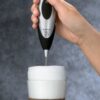 Frother whips up rich, creamy milk froth in seconds for cappuccinos and lattes