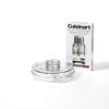 Also includes small and large pushers, detachable disc stem, compact flat cover, spatula, How-to DVD and recipe book