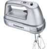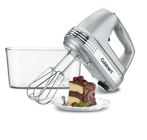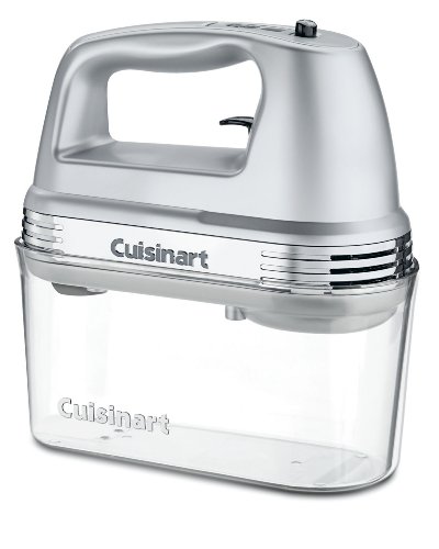 Introducing a hand mixer that’s as easy to put away as it is to operate. The Cuisinart Power Advantage Plus 9 Speed Hand Mixer performs any task a recipe calls for, and then tucks into its own storage case. Once it has mixed heavy batters, whipped up fluffy meringues and kneaded homemade bread dough, just clean it up and put it away. Extra long beaters, chef’s whisk, and dough hooks fit into a clear case, and the mixer snaps on top. Plenty of power, perfect control, and compact storage. That’s a mixer anyone can love.