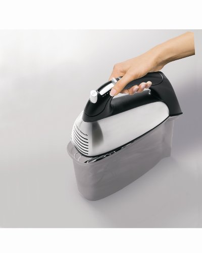 Hamilton Beach hand mixers are powerful and are designed with a focus on versatility and ergonomics. Features convenient snap-on storage cases, which keep attachments together so you don’t have to search for them each time you need to mix. Hamilton Beach hand mixers have handles that are designed for control and comfort, and the unique Bowl Rest feature allows the mixer to sit on the edge of the bowl to eliminate messy drips. A special QuickBurst button provides a quick boost of power and can be used for tough tasks at any speed. Features Include: Snap-on storage case 290 Watts peak power makes mixing easy Convenient mixing features including QuickBurst button and Bowl RestVersatile attachment set includes traditional beaters, wire beaters and whiskBrushed stainless steel housing