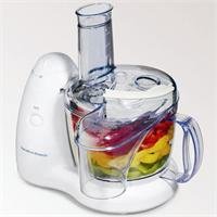 Hamilton Beach 8 Cup Food ProcessorThis Hamilton Beach PrepStar Food Processor has a continuous feed chute andoil dispenser. It has a 350 Watt motor and two speeds plus pulse. It provides in-bowl storage andthe bowl, lid and blades are dishwasher safe.