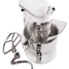 Wire whip, burnished flat beater, spiral dough hook, and pouring shield included