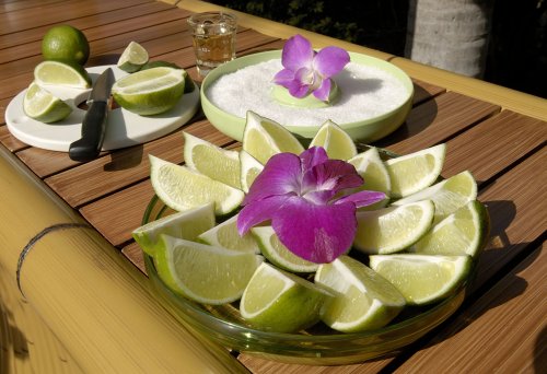 Cutting board to slice up limes; tray for serving