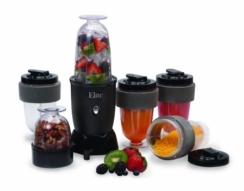 The 17 piece Elite Cuisine Personal Drink Mixer & Blender is the perfect complement to your active lifestyle. Included are four spill proof 16 oz cups that feature foam grips to ensure that you hang on to your beverage while you are on the move. You can also use the small grinder cup to shred cheese with ease, grind coffee beans, or dice vegetables to make fresh chunky salsas.