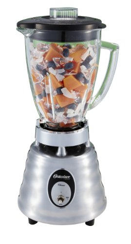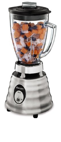 The Oster 4096 Beehive Blender has two speeds and 500 watts of power so you can blend everything from frozen drinks to dips, sauces to smoothies, soup to nuts. Its large capacity, 6-cup glass jar is dishwasher-safe and has been thermal shock tested to withstand extreme temperature. Features a stainless steel “ice crusher” blade, Oster All Metal Drive for durability, and a removable filler cap.