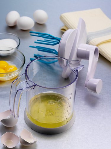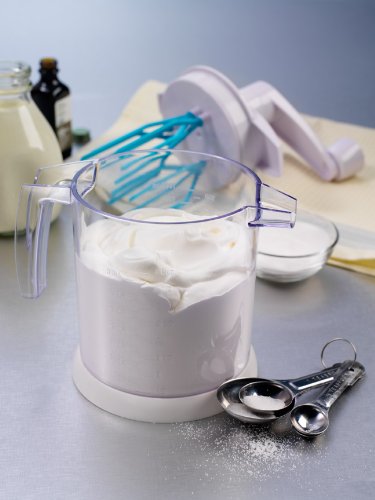 This multitasking Easy Prep Quick Mixer can whip cream, beat eggs, mix batter, and emulsify dressings in seconds. You can beat stiff peaks in under a minute. The multiple mixing blades make lighter, fluffier whipped cream everyone will rave about.